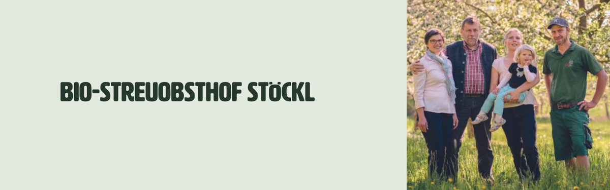 Familie Stöckl pflanzte 1996 ihre ersten Obstbäume, darunter viele verschiedene Apfel- und Birnensorten, aber auch Zwetschgen, Kirschen und Walnüsse. Drei Jahre später stellten sie ihre Landwirtschaft auf den ökologischen Landbau um. In ihrer eigenen Mosterei verarbeitet Familie Stöckl ihre Früchte zu leckeren Fruchtsäften; mit sechs Hydropressen wird mittels schonendem Pressverfahren ohne aufwändige Filtertechnik naturtrüber Saft hergestellt, der anschließend in einer modernen Pasteurisierungsanlage haltbar gemacht wird. Die Abwechslung macht´s, daher gibt es bei Familie Stöckl neben reinem Apfelsaft, viele weitere leckere Sorten.
