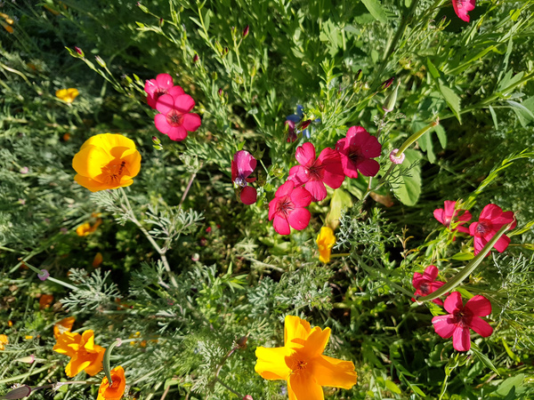 Ungefähr drei Monate nach der Aussaat beginnt das Bienenparadies zu blühen: Der Rote Lein, der Goldmohn und die Jungfer im Grünen werden 30 bis 50 Zentimeter hoch. Augen auf bei der Standort-Wahl: Unsere Blumenmischung mag es lieber sonnig.