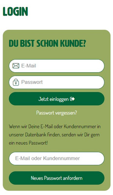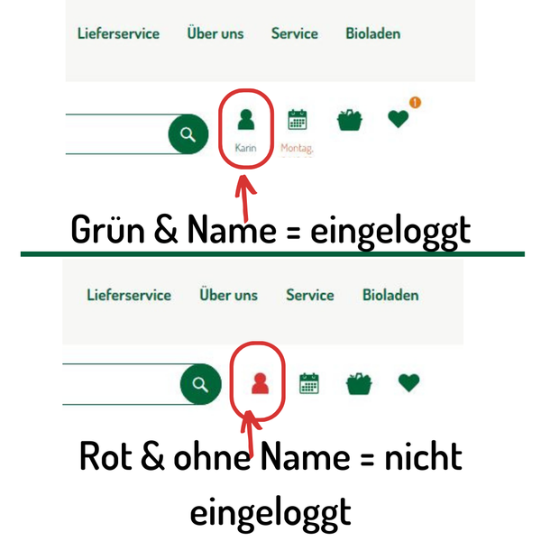 Du musst dich im überarbeiteten Onlineshop einmal neu anmelden. Das geht über das Mensch-Icon rechts oben. Falls du dein Passwort nicht mehr erinnerst, kannst du dir ein Neues zuschicken lassen (s. Tipp #3).