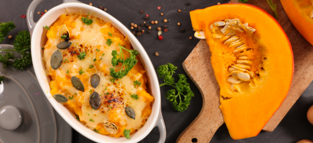 Birne und Walnuss zum Kürbis? Das hattest du vielleicht noch nicht auf dem Schirm! Dann probier unser Rezept für gratinierten Kürbis: klappt mit Hokkaido genauso wie mit Butternut!