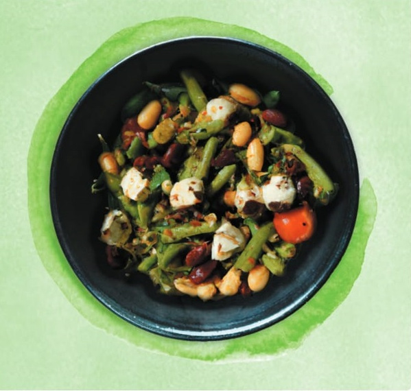 Der Bohnensalat mit Feta ist schnell gemacht und bringt Abwechslung auf das Salatbuffet. Er eignet sich mit etwas Baguette aber auch als leichte Hauptspeise.