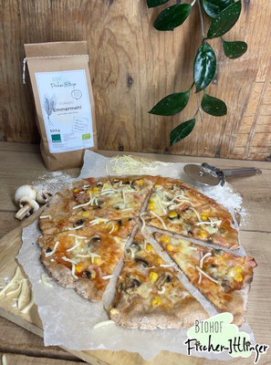 Backmöglichkeiten: Im Pizzaofen bei 300°C ca. 3 - 4 Minuten. Im Backrohr auf einem Pizzastein bei ca. 250°C ca. 6 - 8 Minuten. Oder im Backrohr auf einem Backblech bei ca. 200°C ca. 20 - 25 Minuten.