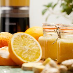 Perfekt zur Fastenzeit passt der Ingwer-Orangen-Shot: Orangensaft, am besten frisch gepresst, zusammen mit Ingwer pürieren. Anschließend Kokosöl und Agavendicksaft oder Honig nach Belieben unterrühren – fertig ist ein würziger Drink für die Fastenzeit! Bestell dir gleich unseren Demeter-Ingwer aus Peru und unsere leckeren Naturland-Orangen von L'arcobaleno aus Italien,