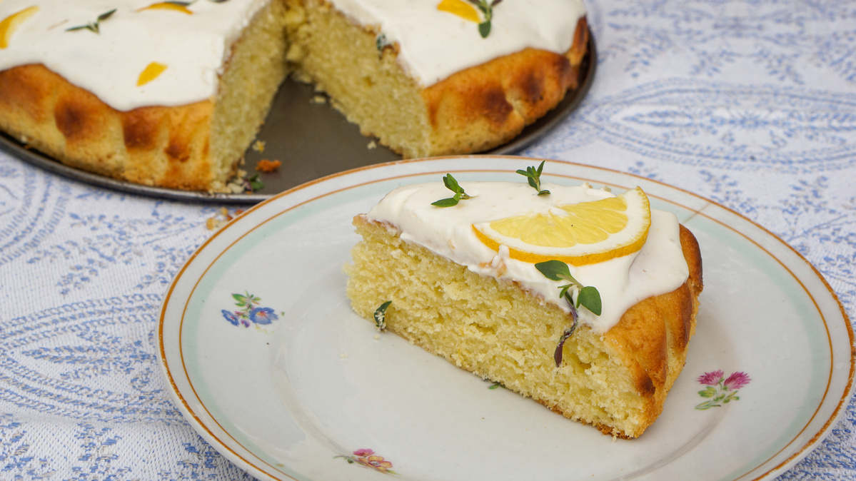 Olivenöl-Zitronen-Kuchen mit Joghurt und Thymian