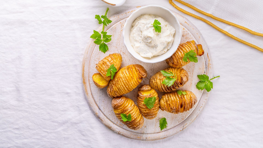 Schwedische Fächer-Kartoffeln mit Radieschen-Schmand