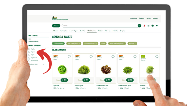 Mithilfe unserer Filterfunktion kannst du dir ausschließlich regionale Produkte anzeigen lassen. Dank „regional“-Label erhältst du aber auch in der Übersicht gleich einen ersten Eindruck zur Herkunft.
